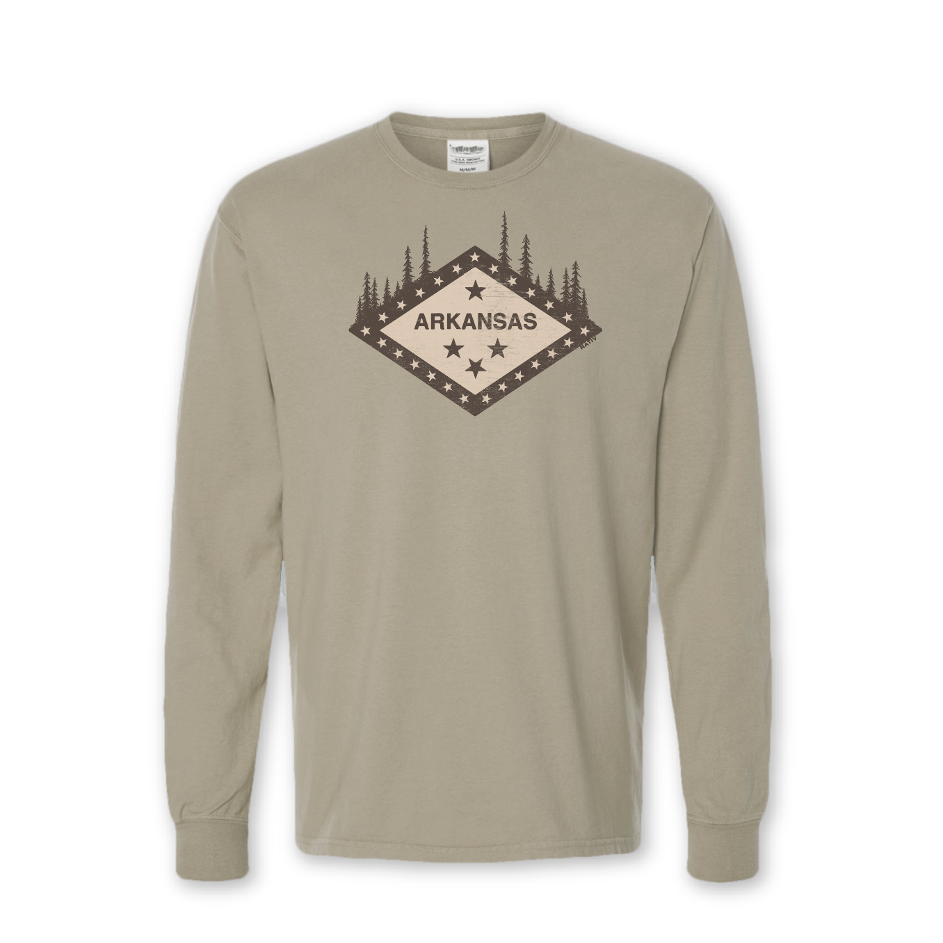 Rooted in state pride and inspired by the natural beauty of the Ozarks and Ouachitas, this tee reimagines the Arkansas state flag with a rustic, outdoor twist. Featuring a pine tree silhouette rising behind the iconic diamond shape, it’s a tribute to our forests, trails, and starry skies.